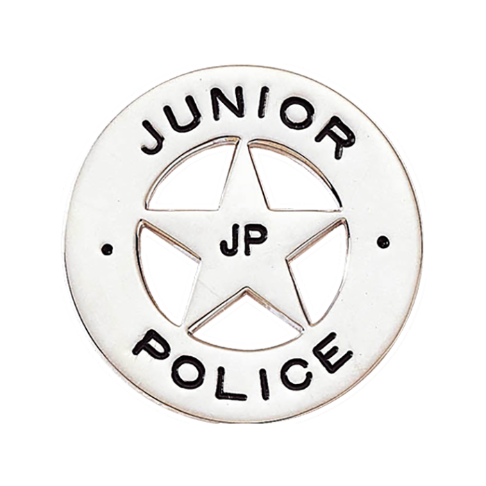 This is a smooth round badge with a 5-point star center, with cut-out gaps between the star points! May have an 1/2" seal applied. For a larger badge, see model BH1976 or BH1980. For a smaller badge, see model B1011.