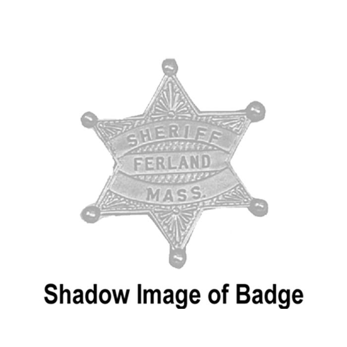 This is a unique six point star badge with decorative background in the star points and balls on the point tips. This badge can be customized with the engraved lettering of your choice.