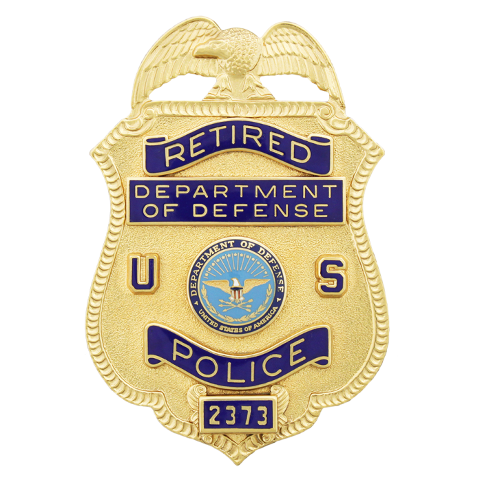 This proud arrangement of the B741 badge for Department of Defense Retired includes embedded letters U and S on either side! This version uses enamel coloring of your choice in the background of the lettering areas!