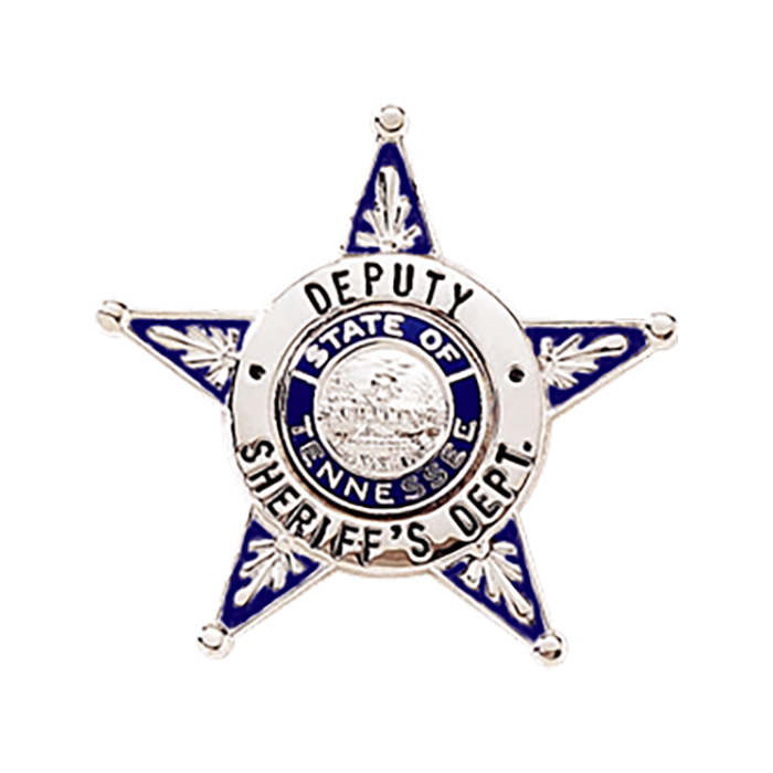This intriguing 5-point star badge features narrow triangular points plus an oversized center ring for lettering! This version also includes enamel coloring of your choice in the background! Not available in roman lettering or hard enamel. For badge without colored background, use model B797.
