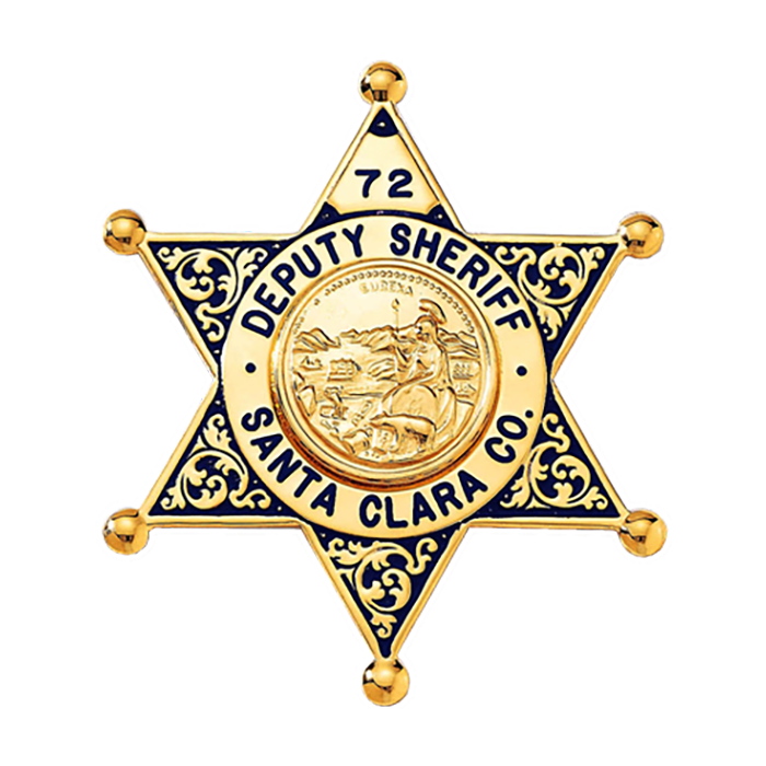 This ornate 6-point star badge includes a center ring and an additional top area for lettering, and comes with enamel coloring of your choice in the background too! Specify color enamel in star points.