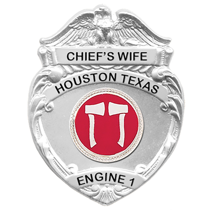 This unique badge features a heart shape with an eagle on top and a decorative border. Solid Back Badge.