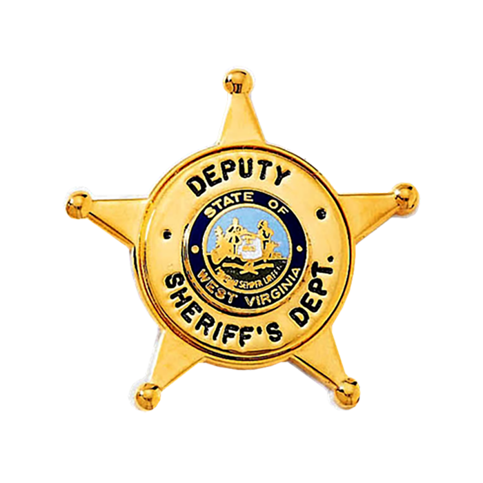 This small intriguing 5-point star badge features narrow triangular points plus an oversized center ring for lettering! If a larger badge is needed, use model B19-C, B1004, or B19-C. Not available with hard enamel or roman lettering.