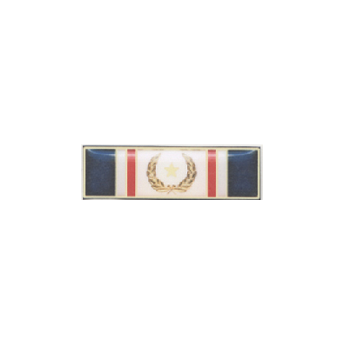 Seven Section Commendation Bar w/Wreath & Star in die. Colors shown from left to right are Blue, White, Red, White, Red, White, Blue. The wreath and star are built into the die and cannot be changed.