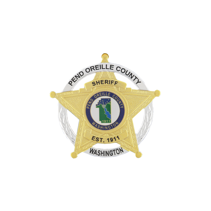 Unique deluxe enamel FlexBadge five point star features ball points and a decorative wreath ring around it similar to the metal version B2553. If a colored background is needed, use model FLX2553-DE.