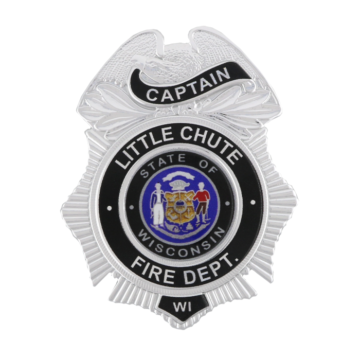 This is the FlexBadge version of our badge B427 with reverse enamel lettering.