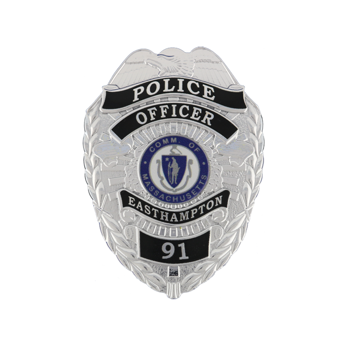 This is the FlexBadge features reverse enamel panels and an eagle atop. It is similar to our metal B899.