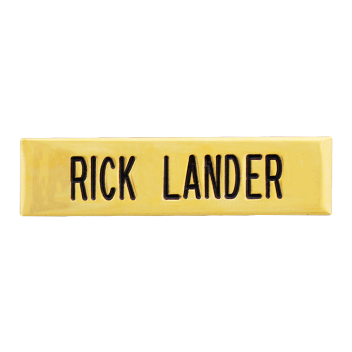 Exceptional quality name bar that is engraved and plated to order. Name Bar holder is model B2490.