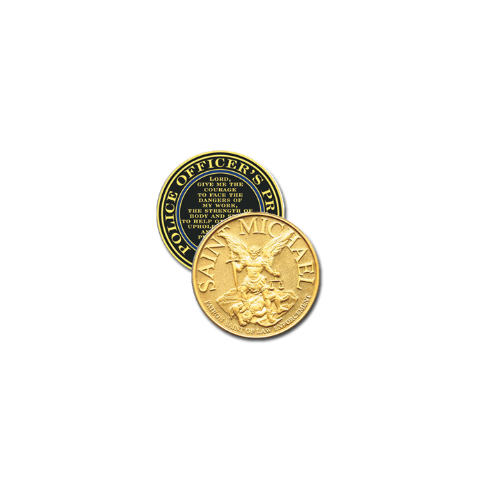 Blackinton Badge Company Thin Blue Line St. Michael Police Challenge Coin. Size is 1-3/4".