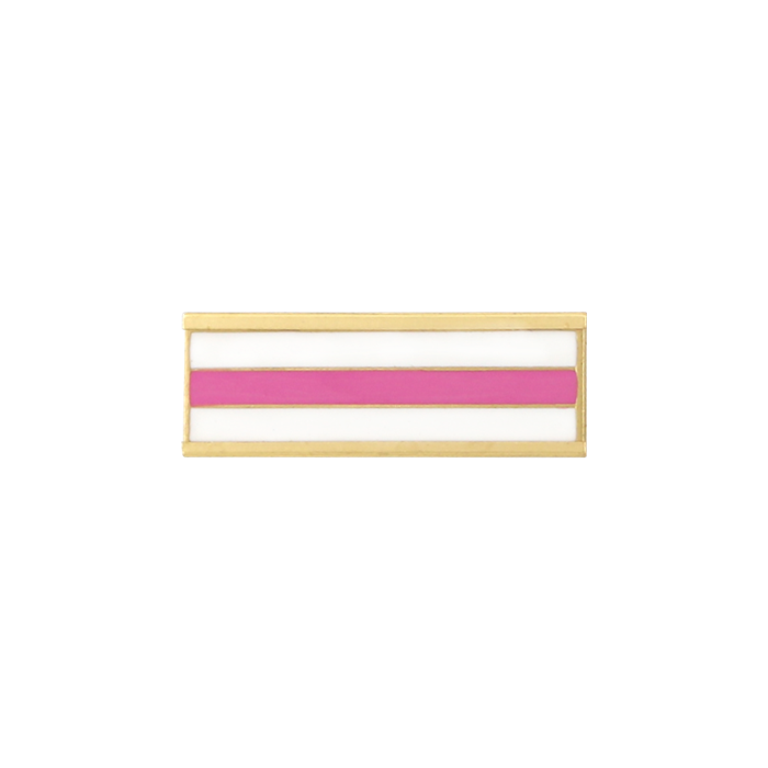 Show your support for Breast Cancer Awareness with this stunning three section commendation bar. 10% of all sales are donated to Breast Cancer research and support charities. Not Sold In Pairs. 1-3/8 X 3/8 Breast Cancer Awareness 3 section Thin Pink Line commendation bar. Colors: White and PMS237. Gold Finish.