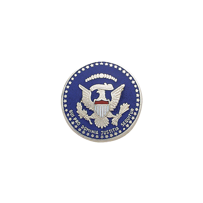 Federal Eagle collar seal insignia with a blue enamel background. Available in several finishes and sizes. Available in 15/16" (0.9375"), 7/8" (0.875"), 3/4" (0.75"), 5/8" (0.625"), and 1/2" (0.5"). This item can be placed on a badge, but only on Smith & Warren Badges. This item cannot be placed on a Blackinton Badge or on any EPoliceSupply In Stock Badge.