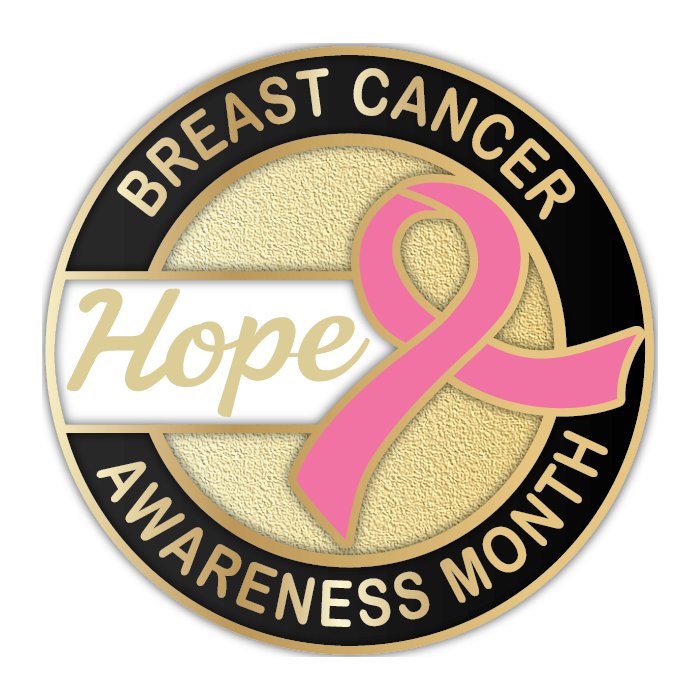 Breast cancer awareness month hope seal with pink ribbon. Available in 15/16" (0.9375"), 7/8" (0.875"), 3/4", 5/8" (0.625"), and 1/2". This item can be placed on a badge, but only on Smith & Warren Badges. This item cannot be placed on a Blackinton Badge or on any EPoliceSupply In Stock Badge.