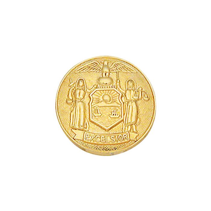 New York State Plain No Rim Collar Seal Insignia. Available in several finishes and sizes. Available in 15/16" (0.9375"), 7/8" (0.875"), 3/4" (0.75"), 5/8" (0.625"), and 1/2" (0.5"). This item can be placed on a badge, but only on Smith & Warren Badges. This item cannot be placed on a Blackinton Badge or on any EPoliceSupply In Stock Badge.