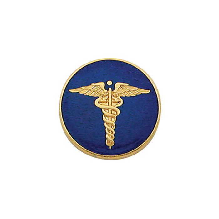 Medical Caduceus Collar Seal Insignia on Blue Enamel Background. Available in several finishes and sizes. Available in 15/16" (0.9375"), 7/8" (0.875"), 3/4" (0.75"), 5/8" (0.625"), and 1/2" (0.5"). This item can be placed on a badge, but only on Smith & Warren Badges. This item cannot be placed on a Blackinton Badge or on any EPoliceSupply In Stock Badge.