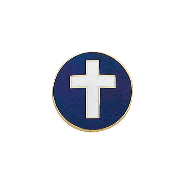 Chaplain Cross with white cross on blue background. Available in several finishes and sizes. Available in 15/16" (0.9375"), 7/8" (0.875"), 3/4" (0.75"), 5/8" (0.625"), and 1/2" (0.5"). This item can be placed on a badge, but only on Smith & Warren Badges. This item cannot be placed on a Blackinton Badge or on any EPoliceSupply In Stock Badge.