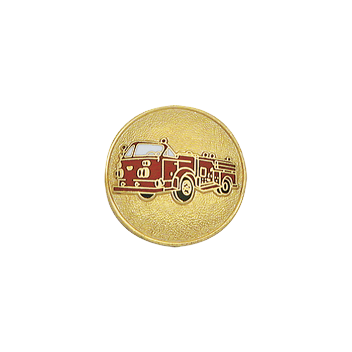 Fire Truck center seal collar insignia. See model C161M for a variation of this truck on a disc. This item can be placed on a badge, but only on Smith & Warren Badges. This item cannot be placed on a Blackinton Badge or on any EPoliceSupply In Stock Badge.