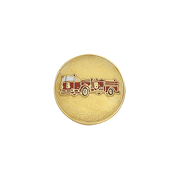 Fire Truck center seal collar insignia. For the fire truck by itself, use model C205. See model C159RM for a variation of this truck on a disc. This item can be placed on a badge, but only on Smith & Warren Badges. This item cannot be placed on a Blackinton Badge or on any EPoliceSupply In Stock Badge.