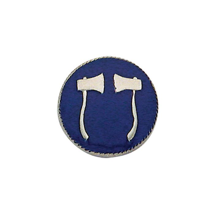 Two Axes collar insignia with colored enamel background. For red enamel, use model C171RE. For plain version, use model C170P. Available in 15/16" (0.9375"), 7/8" (0.875"), 3/4", 5/8" (0.625"), and 1/2". This item can be placed on a badge, but only on Smith & Warren Badges. This item cannot be placed on a Blackinton Badge or on any EPoliceSupply In Stock Badge.