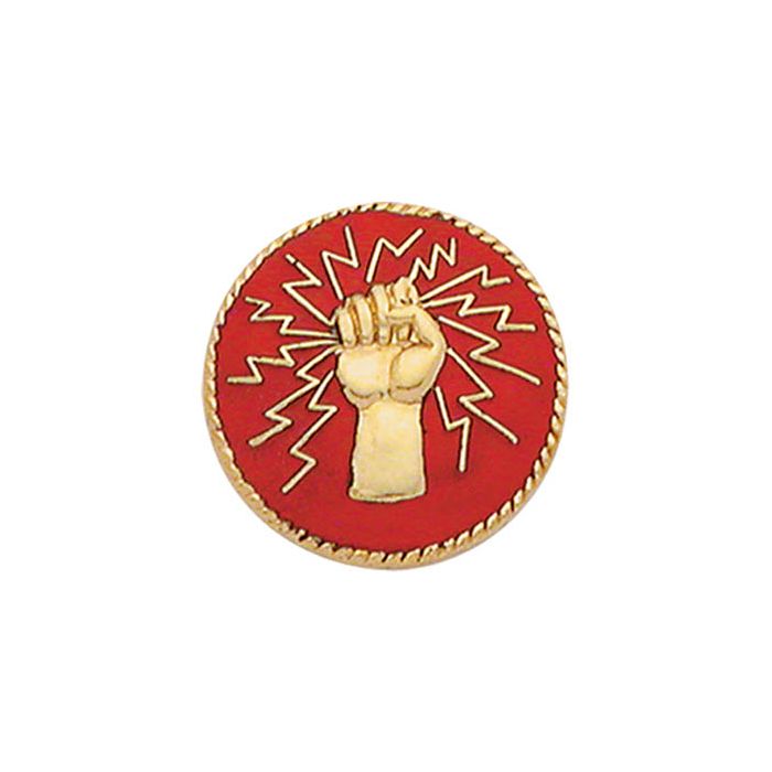 Red Dispatcher collar seal insignia with fist and lighting bolts. Available in several finishes and sizes. Available in 15/16" (0.9375"), 7/8" (0.875"), 3/4" (0.75"), 5/8" (0.625"), and 1/2" (0.5"). This item can be placed on a badge, but only on Smith & Warren Badges. This item cannot be placed on a Blackinton Badge or on any EPoliceSupply In Stock Badge.
