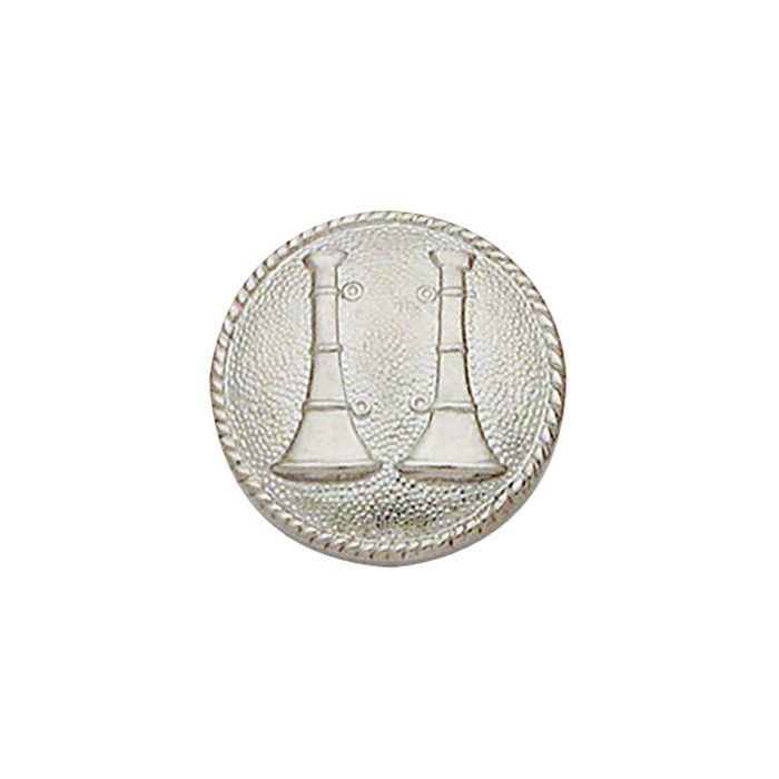Two Bugles collar seal insignia with plain background. For a textured background, use model C182TP. For blue enamel, use model C183BE. For red enamel, use model C183RE. For black enamel, use model C183BKE. Available in 15/16" (0.9375"), 7/8" (0.875"), 3/4", 5/8" (0.625"), and 1/2". This item can be placed on a badge, but only on Smith & Warren Badges. This item cannot be placed on a Blackinton Badge or on any EPoliceSupply In Stock Badge.