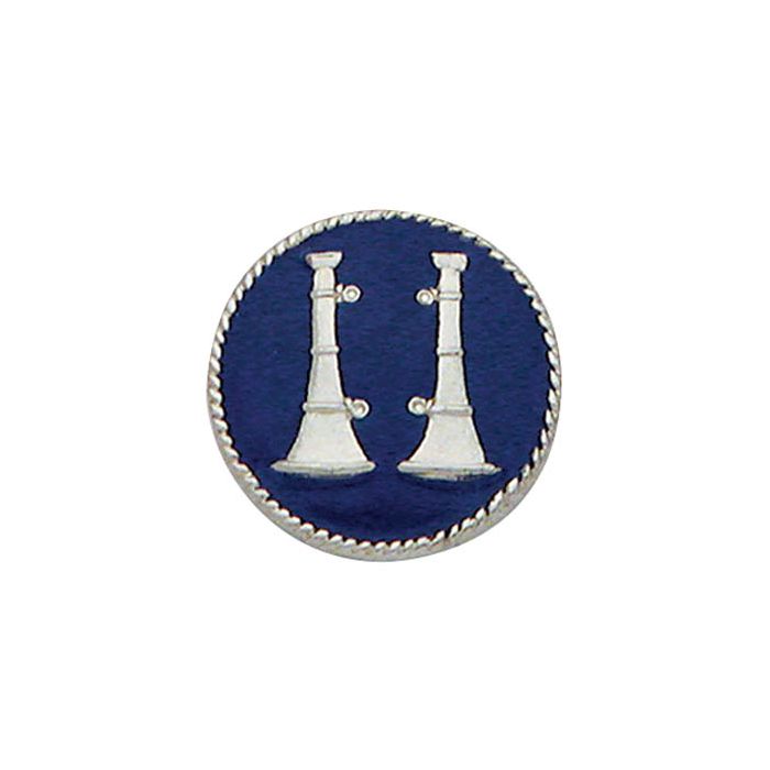 Two Fire Bugles collar insignia with colored enamel background. For red enamel, use model C183RE. For black enamel, use model C183BKE. For plain version, use model C182P. Available in 15/16" (0.9375"), 7/8" (0.875"), 3/4", 5/8" (0.625"), and 1/2". This item can be placed on a badge, but only on Smith & Warren Badges. This item cannot be placed on a Blackinton Badge or on any EPoliceSupply In Stock Badge.