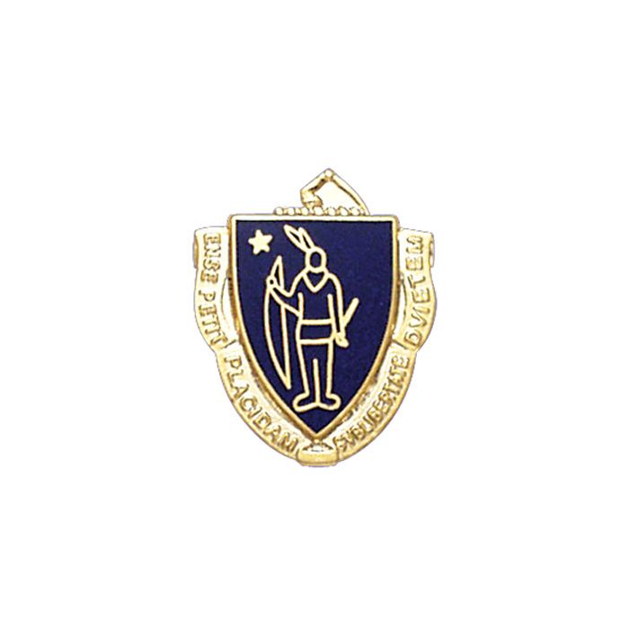 Massachusetts One Color Coat of Arms Collar Seal Insignia. Available in several finishes and sizes. Available in 15/16" (0.9375"), 7/8" (0.875"), 3/4" (0.75"), 5/8" (0.625"), and 1/2" (0.5"). This item can be placed on a badge, but only on Smith & Warren Badges. This item cannot be placed on a Blackinton Badge or on any EPoliceSupply In Stock Badge.