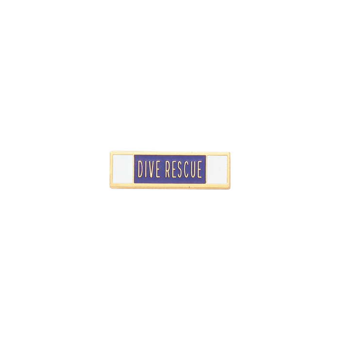 This handsome three section bar has the words Dive Rescue in the center on two lines. A great way to recognize specialty achievement and certification as a Department or Command Dive Rescue Team member. The wording / text is in the die and cannot be changed.