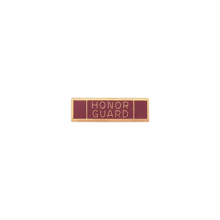 This handsome three section bar has the words Honor Guard on two lines in the center on the bar recognizing participating in the Honor Guard. For a 5/16" high bar, use model A10931. The wording / text is in the die and cannot be changed.