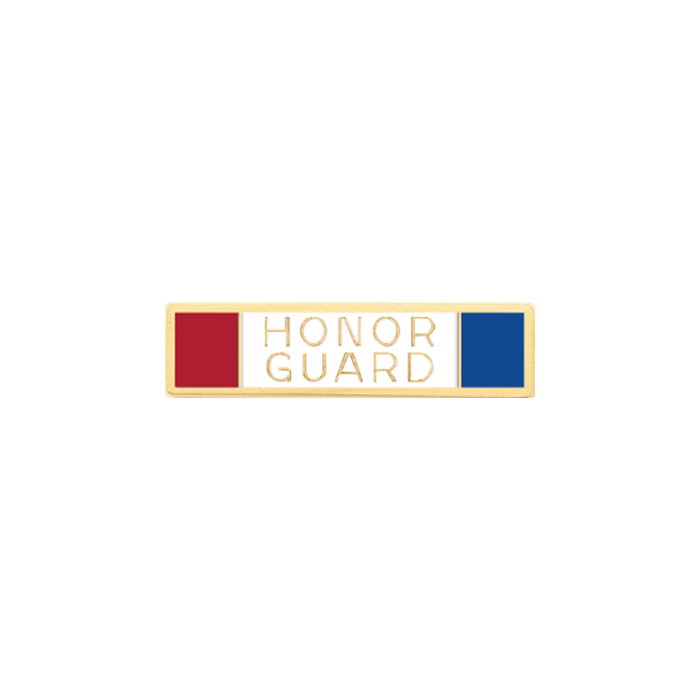 This handsome three section bar has the words Honor Guard on two lines in the center on the bar recognizing participating in the Honor Guard. For a 3/8" high bar, use model A10398. The wording / text is in the die and cannot be changed.