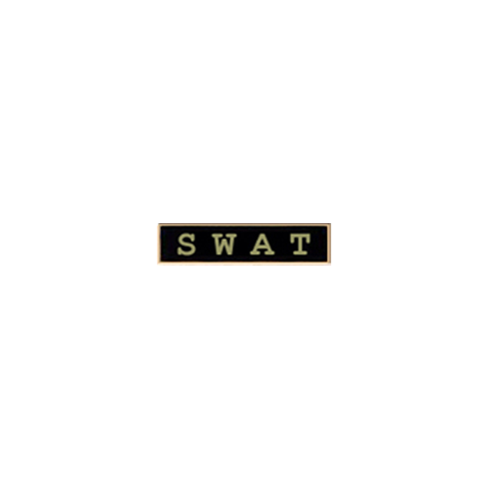 Impressive one section SWAT commendation bar recognizing certification in tactical specialized SWAT training. For the larger 3/8" bar, use model A11073. The wording / text is in the die and cannot be changed.