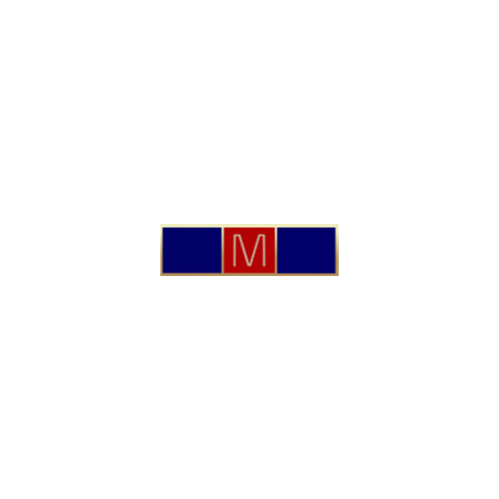 Handsome three section bar with a M in the center section. When blue and red enamel are used this bar is often used to recognize Meritorious Actions. The M could also recognize a master instructor. The wording / text is in the die and cannot be changed.