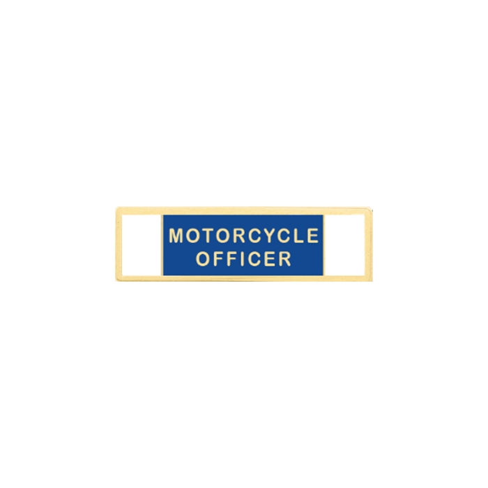 Motorcycle Officer Recognition commendation bar. This special commendation bar recognizes those individuals appointed to Motorcycle Patrol Operations/Departments. The wording / text is in the die and cannot be changed.