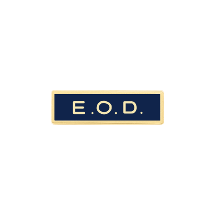 Impressive one section bar with the initials E.O.D. representative of Explosive Ordnance Disposal (EOD) “Bomb Squad” Certification and Recognition bar. The wording / text is in the die and cannot be changed.