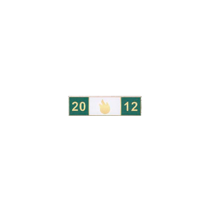This handsome three section bar features a flame in the center section and the numbers 20 12 on each outer section. The bar can take the enamel color of your choice. The wording / text is in the die and cannot be changed. The symbol(s) are built into the die and cannot be changed.