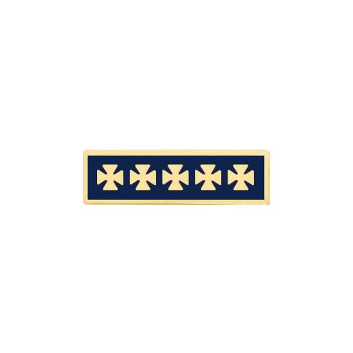 Impressive one section bar containing five Maltese Crosses - can be used to recognize five or twenty five years of service. For the smaller 5/16" bar, use model A11653. The symbol(s) are built into the die and cannot be changed.