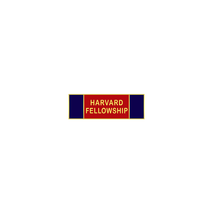 Impressive three section bar with the words Harvard Fellowship on two lines in the center section. In recognition of a Harvard Fellowship. Colors on screen may vary slightly from actual colors.