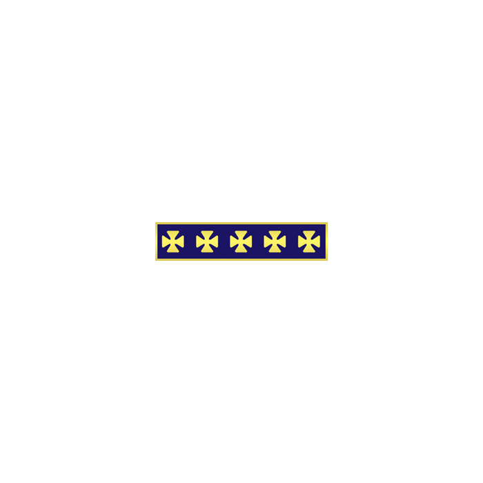 Handsome one section commendation bar with five Maltese Crosses recognizes 5 or 25 years of service. This impressive bar can be customized with the color of your choice. For the larger 3/8" bar, use model A11554. The symbol(s) are built into the die and cannot be changed.