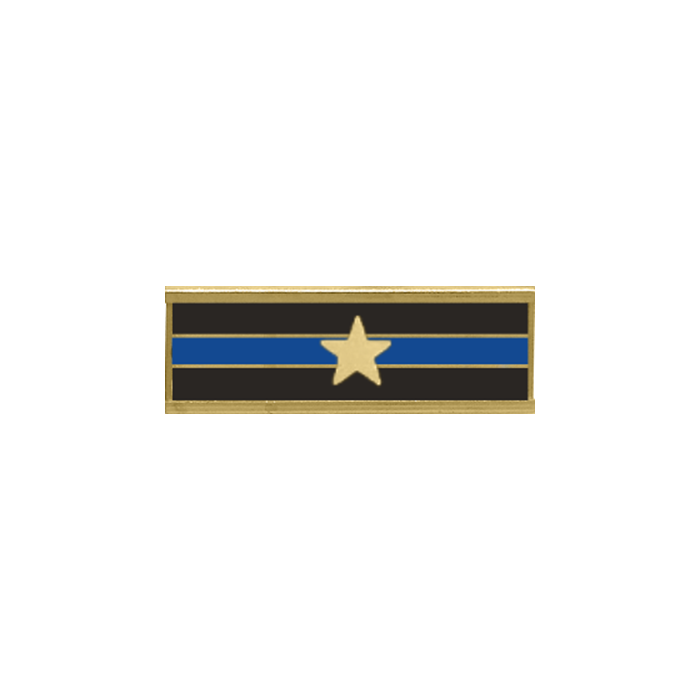 Exquisite three section bar with horizontal stripes with a star in the middle. Used as a flag bar to show U.S. pride, and a mourning bar in memory of a fallen officer or firefighter. The symbol(s) are built into the die and cannot be changed.