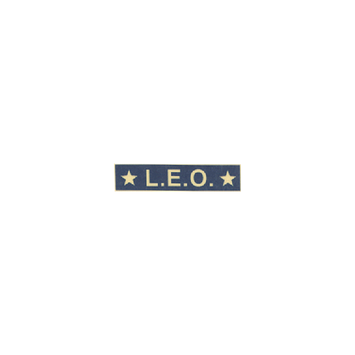 One section commendation bar featuring the lettering L.E.O. in the center of two stars which are in the die. The wording / text is in the die and cannot be changed. The symbol(s) are built into the die and cannot be changed.