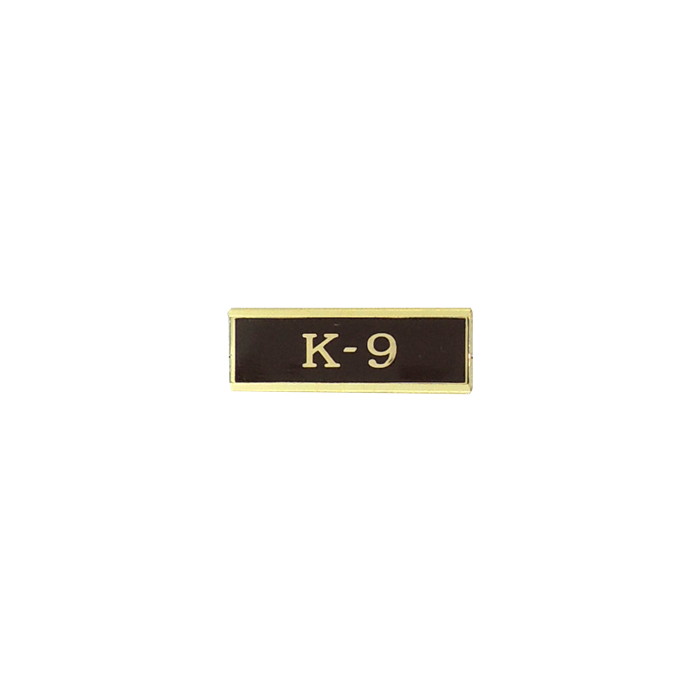Impressive one section bar with the words K-9 built into the die, recognizes authority in canine supported law enforcement. The wording / text is in the die and cannot be changed.