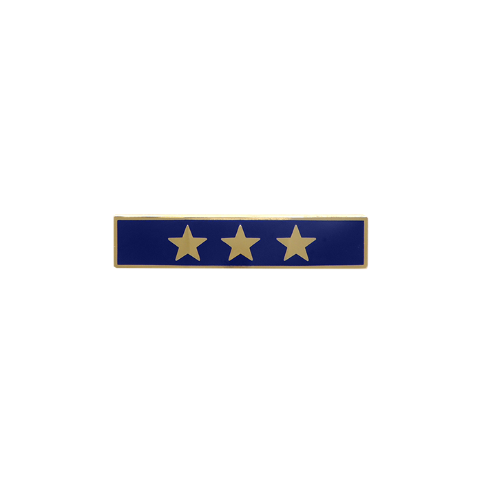 This impressive commendation bar can be customized with your choice of color to symbolize exemplary service, appointment to a group or team, service term, and much more. The three stars are in the die. If this bar is needed to fit a bar holder, use model A4616-F (5/16") or model A7140-E (3/8").