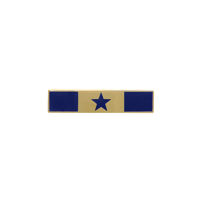 This impressive three section bar has a star in the center section and can be customized colors with the colors of your choice to symbolize exemplary service, appointment to a group or team, one year of service, and much more. If this bar is needed to fit a bar holder, use model A12623 (3/8"). The symbol(s) are built into the die and cannot be changed.