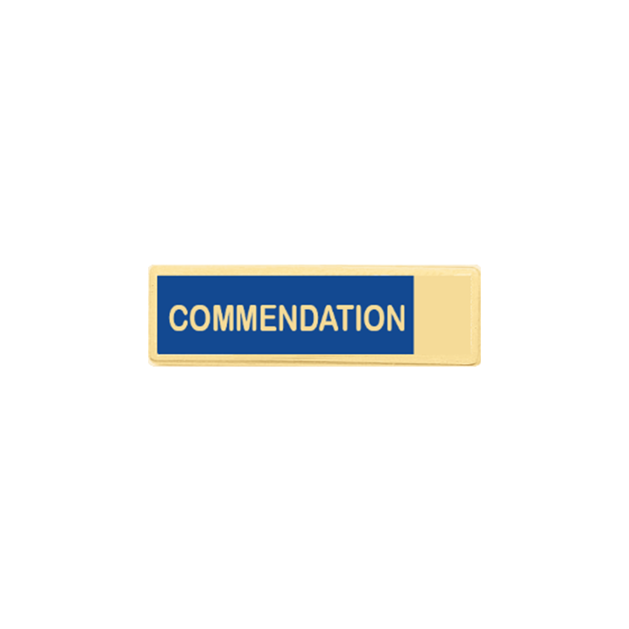 Exquisite one section commendation award - a distinguishing symbol of courage, and strength of mind, in the face of danger to protect life. The right hand metal area can be engraved with the letter / number of your choice. The wording / text is in the die and cannot be changed. The engraved area will be gold or silver depending on chosen finish. Also available in a 1-13/16" (1.8125") Length bar (A9823).
