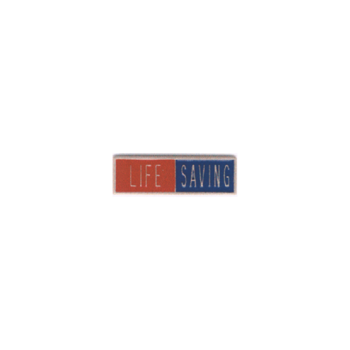 Two section bar with the words Life Saving in each of the sections. This lifesaving bar helps to recognize a selfless act with the saving of a human life. The wording / text is in the die and cannot be changed. Also available in 3/8" height (Style A11178).