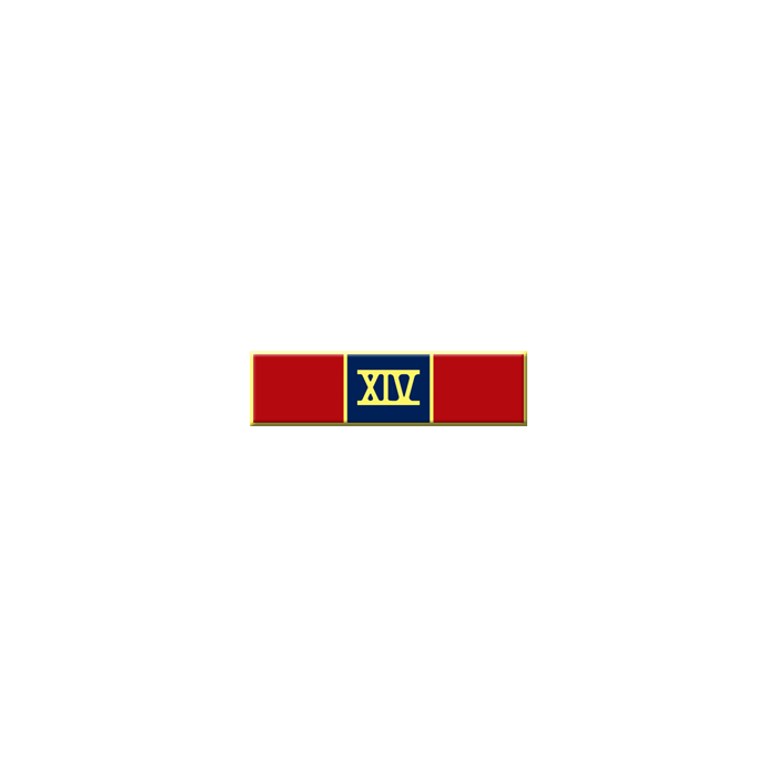 The roman numeral Fourteen sits inside the center section of a three section bar. A perfect choice to recognize an individuals Fourteenth year of service. Other numerals available. Just search A12699 in search field at the top of our website. The wording / text is in the die and cannot be changed.