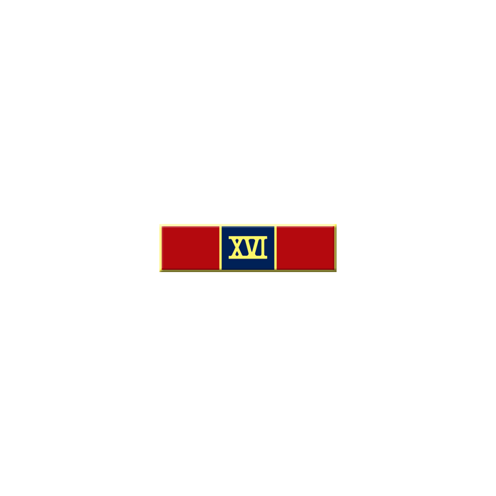 The roman numeral Sixteen sits inside the center section of a three section bar. A perfect choice to recognize an individuals Sixteenth year of service. Other numerals available. Just search A12699 in search field at the top of our website. The wording / text is in the die and cannot be changed.