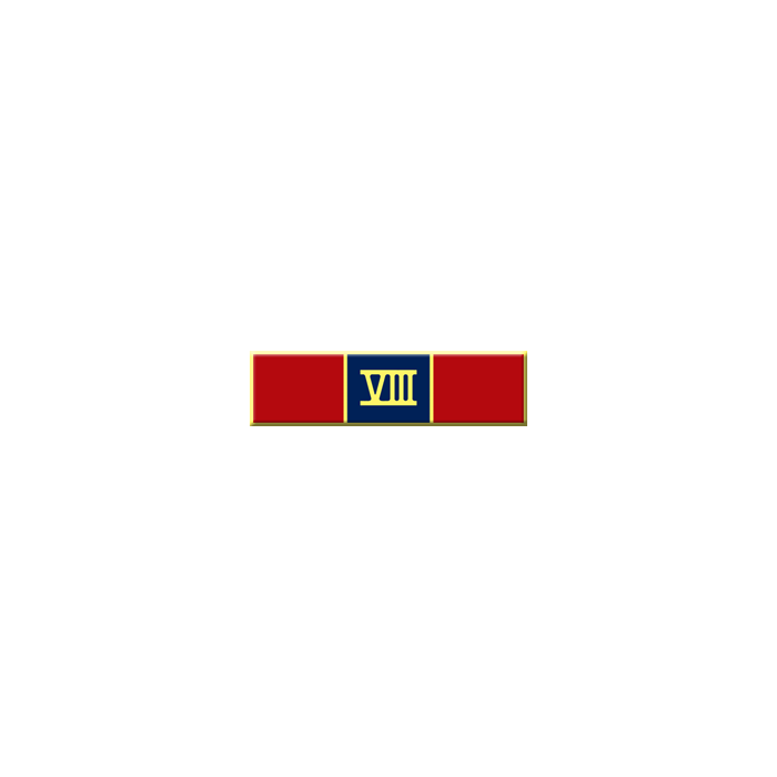 The roman numeral Eight sits inside the center section of a three section bar. A perfect choice to recognize an individuals Eighth year of service. Other numerals available. Just search A12699 in search field at the top of our website. The wording / text is in the die and cannot be changed.