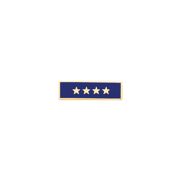 Handsome one section commendation bar with four stars in the center, recognize four or twenty years of service. The stars are built into the die and cannot be changed. If this bar is needed to fit a bar holder, use model A4616-G (5/16") or model A7140-F (3/8"). A346-A=NO STARS, A346-=1 STAR, A346-B=2 STARS, A346-C=3 STARS, A346-E=5 STARS, A346-F=6 STARS, A346-H=7 STARS, A346-G=8 STARS.