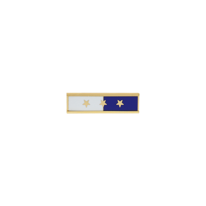 Handsome two section commendation bar with three stars. Use this unique bar to recognize three or fifteen years of service. The stars are built into the die and cannot be changed. For no star, use model A3704. Available up to three stars. 1 Stars: A3704. 2 Stars: A3704-B. For the 3/8"H version, use model A7141-B.