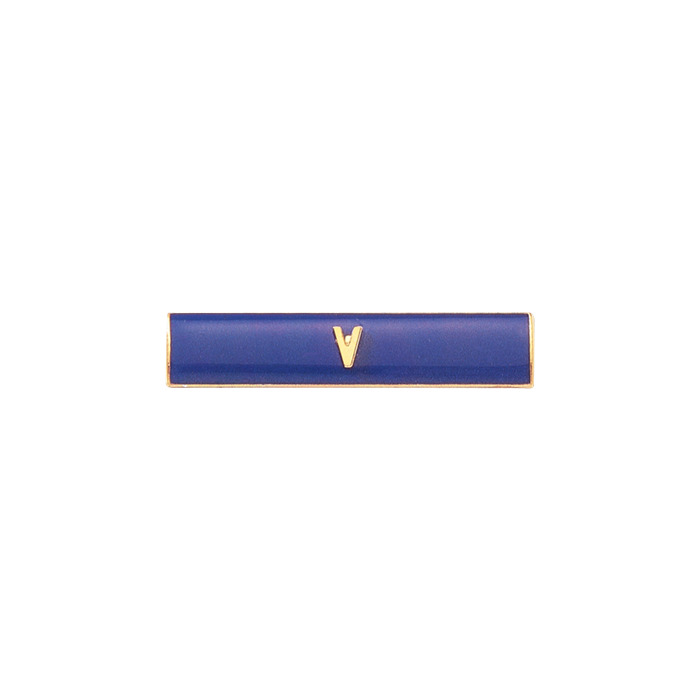One section commendation bar that takes an applied letter or number. Shown with a V for Valor. The Valor award distinguishes courage and strength of mind, in the face of danger to protect life. Must be ordered with any letter or number applied, at an additional cost. If this bar is needed to fit in a bar holder, use model A4616-M (5/16") or A7140-B (3/8"). The hole / dot in the center is in the die and cannot be changed.